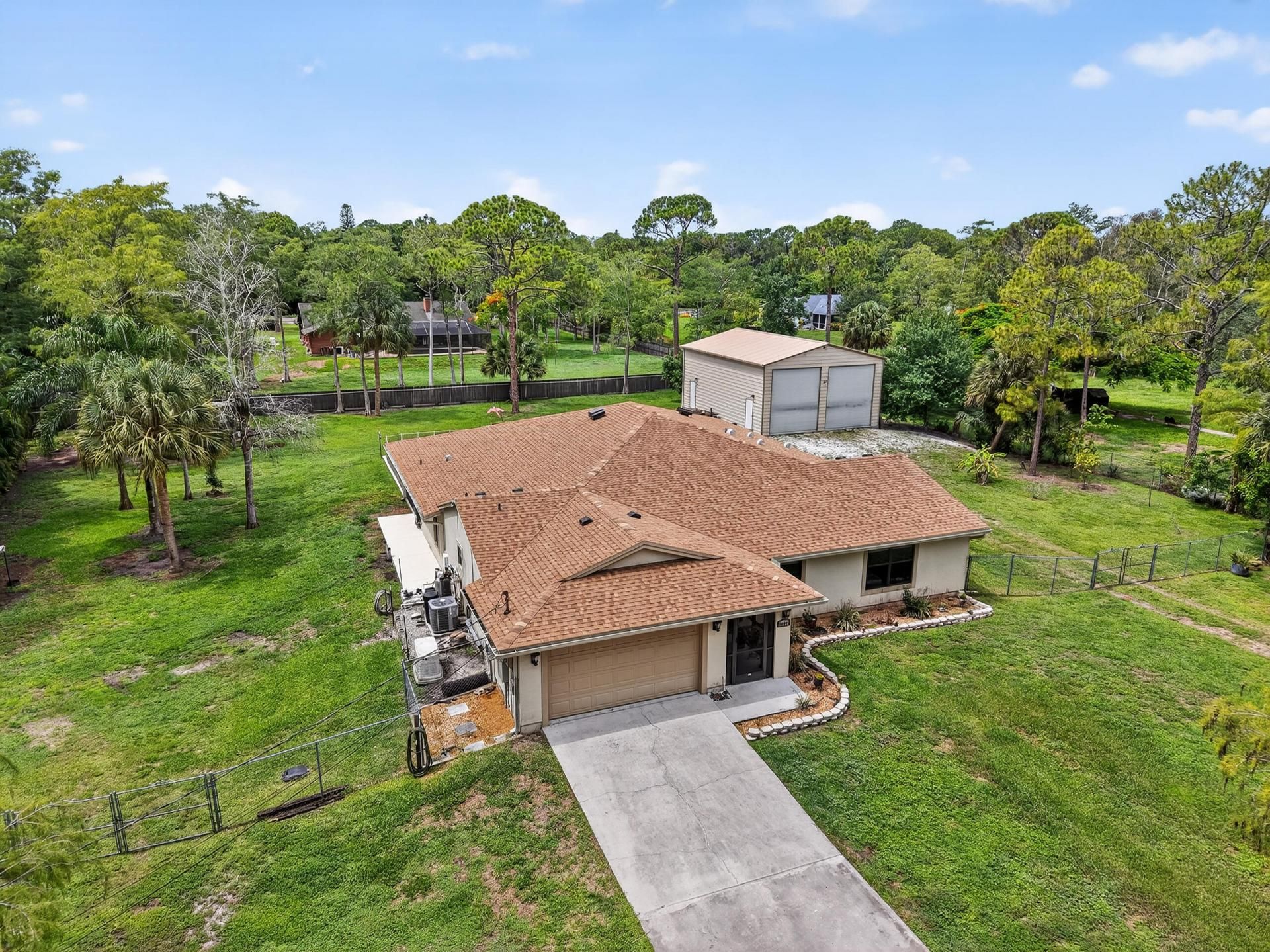 Edit mortgage details for a more accurate paymentBeautiful family retreat in a tranquil country setting. This property sets on 1.41 acres where modern amenities meet country charm. This 5 BR residence features 2 master suites, 4 full baths + a versatile flex room.The expansive screened-in patio offers serene views of the lg property while the sparkling salt water pool/Jacuzzi invites you to relax & unwind. Inside,a gourmet kitchen boasts granite countertops, double ovens, a warming drawer, & a large island perfect for entertaining.Other highlights include an innovative safe room w/reinforced concrete walls & hurricane door, whole house impact windows and generator & solar roof fans for optimal attic cooling. A massive (30x40x16) 2ndary bldg, fully air-conditioned & insulated is perfect for housing boats or RVs. +Greenhouse & chickencoop